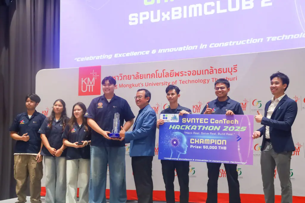 āļāļāļ°āļ§āļīāļĻāļ§āļāļĢāļĢāļĄāļĻāļēāļŠāļāļĢāđ āļĄāļŦāļēāļ§āļīāļāļĒāļēāļĨāļąāļĒāļĻāļĢāļĩāļāļāļļāļĄ āļāļāđāļŠāļāļāļāļ§āļēāļĄāļĒāļīāļāļāļĩāļāļąāļ āļāļĩāļĄ SPU BIM Club āļāļĩāđāļŠāļēāļĄāļēāļĢāļāļāļ§āđāļēāļĢāļēāļāļ§āļąāļĨ âCHAMPIONâ āļĢāļąāļāđāļāļīāļāļĢāļēāļāļ§āļąāļĨ 50,000 āļāļēāļ! āļāļēāļāļāļēāļĢāđāļāđāļāļāļąāļ SYNTEC ConTech Hackathon 2025 āļ āļēāļĒāđāļāđāđāļāļ§āļāļīāļ âHack Real. Solve Real. Build Real.â āļāļąāļāđāļāļĒāļāļĢāļīāļĐāļąāļ SYNTEC Construction Public Company Limited āļĢāđāļ§āļĄāļāļąāļ āļĄāļŦāļēāļ§āļīāļāļĒāļēāļĨāļąāļĒāđāļāļāđāļāđāļĨāļĒāļĩāļāļĢāļ°āļāļāļĄāđāļāļĨāđāļēāļāļāļāļļāļĢāļĩ (KMUTT) āđāļĄāļ·āđāļāļ§āļąāļāļāļĩāđ 14 āļāļļāļĨāļēāļāļĄ 2568 āļ āļāļēāļāļēāļĢ Learning Exchange (LX) āļāļąāđāļ 3 āđāļĨāļ° 14 āļĄāļāļ.