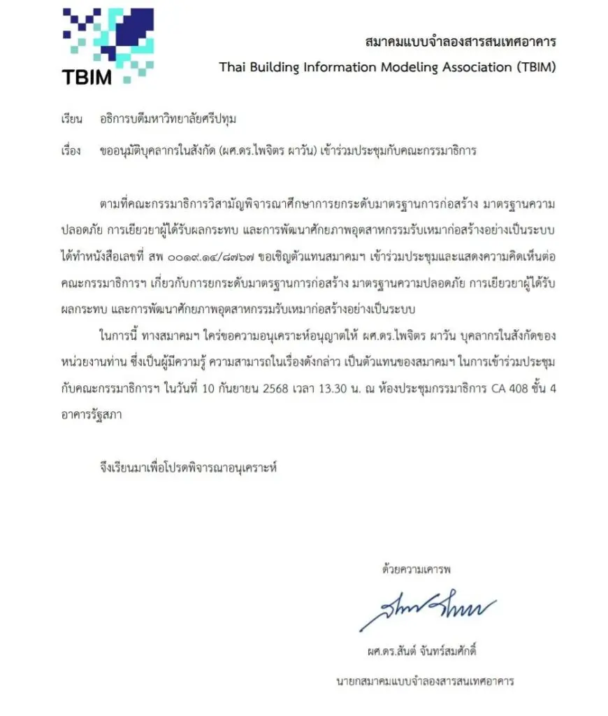 ในโอกาสนี้ คณบดีคณะวิศวกรรมศาสตร์ มหาวิทยาลัยศรีปทุม ได้ร่วมให้ข้อเสนอแนะในฐานะผู้ทรงคุณวุฒิด้านวิศวกรรม โดยเน้นย้ำความสำคัญของการบูรณาการองค์ความรู้ทางวิศวกรรม มาตรฐานวิชาชีพ เทคโนโลยีสมัยใหม่ และการพัฒนาทรัพยากรมนุษย์ เพื่อยกระดับระบบการก่อสร้างของประเทศให้สอดคล้องกับบริบทปัจจุบันและอนาคต