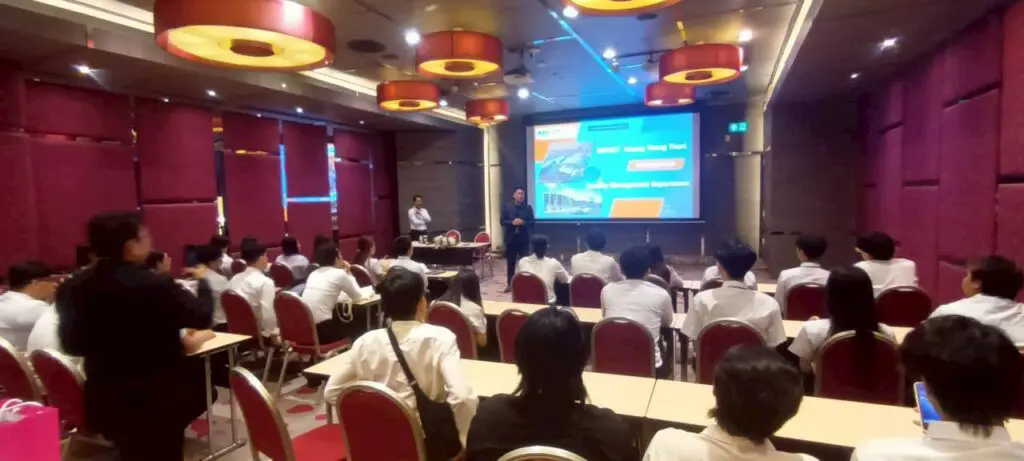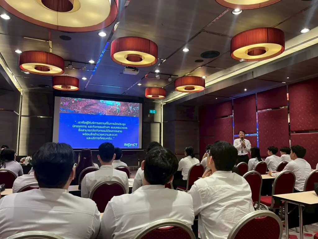 คุณวิชัย บรรพบุรุษ ผู้จัดการฝ่ายบริหารอาคาร บริษัท อิมแพ็ค เอ็กซิบิชั่น แมเนจเม้นท์ จำกัด ซึ่งเป็นศิษย์เก่า สาขาวิชาวิศวกรรมไฟฟ้า รหัส 40 ให้การต้อนรับและบรรยายให้ความรู้ พร้อมนำเยี่ยมชมพื้นที่ปฏิบัติงานจริง เมื่อวันที่ 31 ตุลาคม 2568