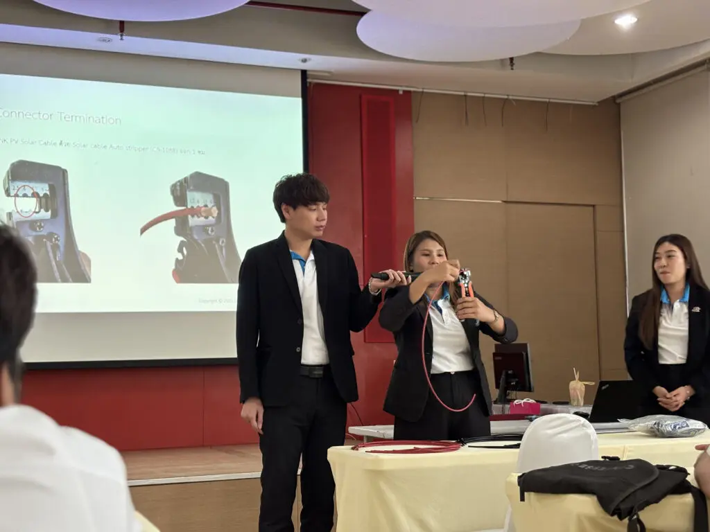 การอบรมครั้งนี้ได้รับความร่วมมือจากบริษัท อินเตอร์ลิ้งค์ คอมมิวนิเคชั่น จำกัด (มหาชน) ซึ่งจัดหลักสูตรเพื่อให้ความรู้เชิงลึกด้าน การเลือกใช้ การติดตั้ง และการทดสอบสายสัญญาณในระบบเซลล์แสงอาทิตย์ โดยเน้นทั้งภาคทฤษฎีและภาคปฏิบัติจริง พร้อมมอบใบรับรอง (Certificate) ให้กับผู้ผ่านการประเมิน