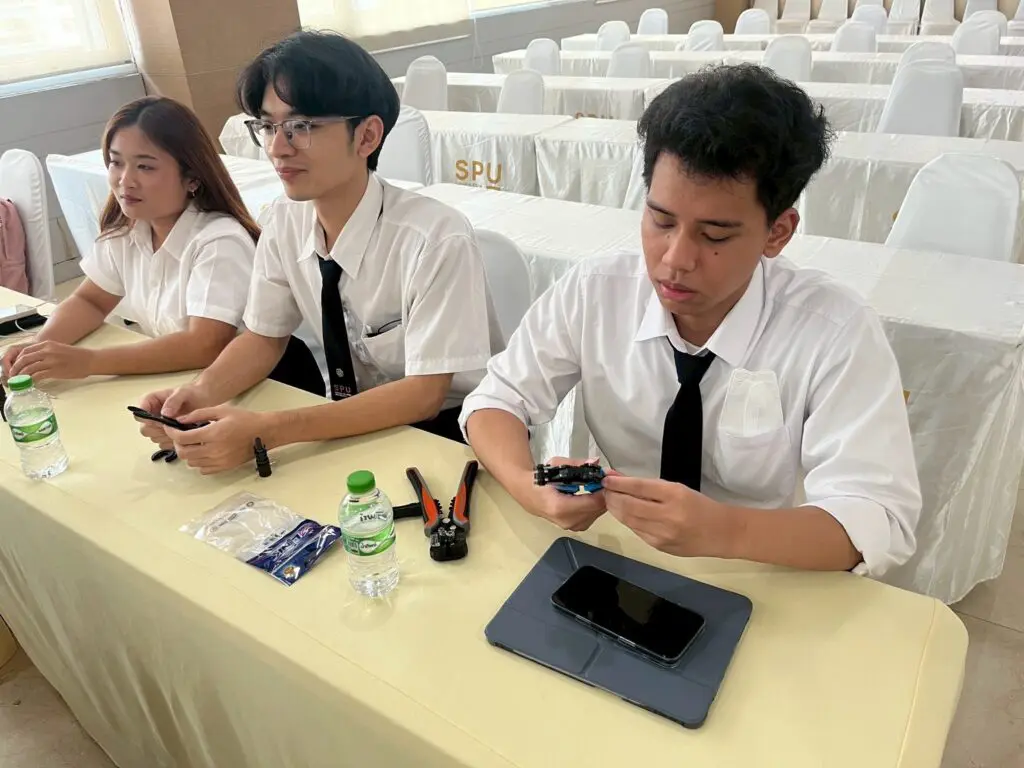 กิจกรรม Workshop ช่วงบ่ายเปิดโอกาสให้นักศึกษาได้ฝึกติดตั้งและทดสอบสายสัญญาณในระบบโซลาร์เซลล์อย่างเป็นขั้นตอน เสริมสร้างความมั่นใจและความพร้อมก่อนก้าวสู่ภาคอุตสาหกรรมจริง