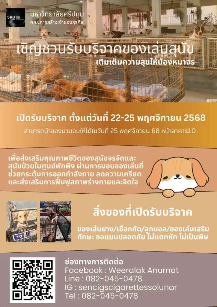 ช่วงเวลา & จุดส่งมอบ: รับบริจาค 22 – 25 พฤศจิกายน 2568 นำมามอบที่ ม.ศรีปทุม (หน้าอาคาร 10)