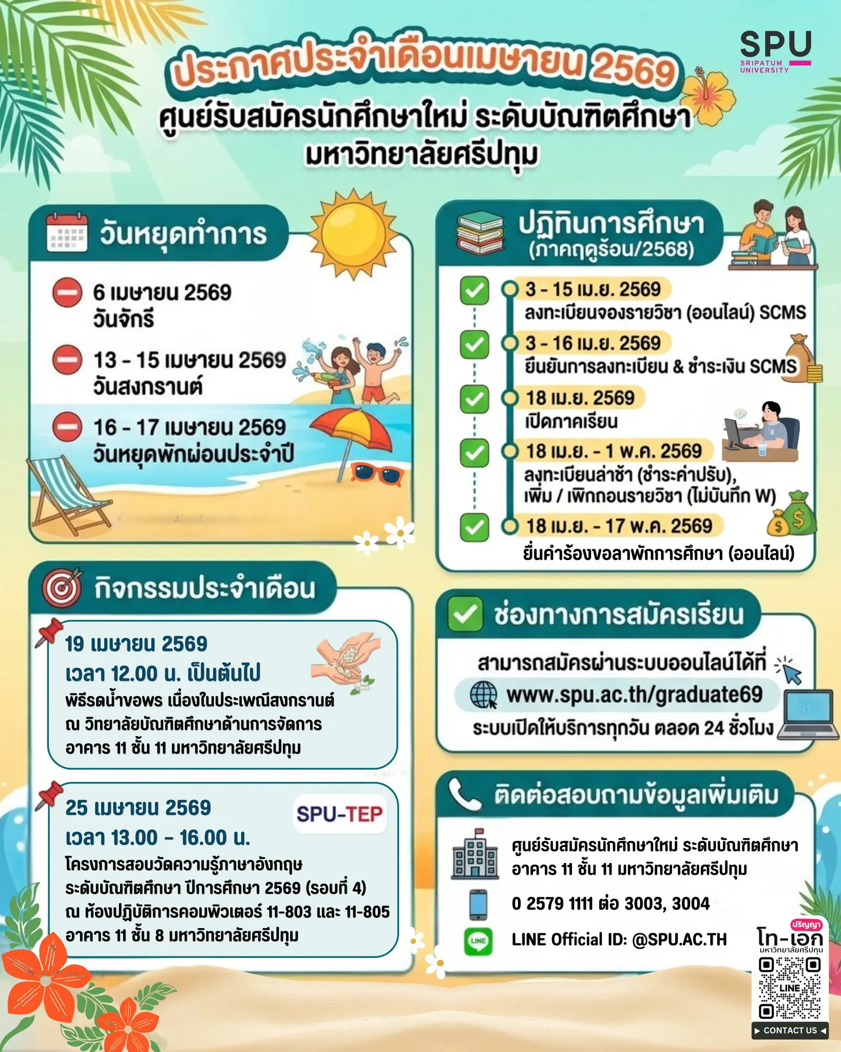 รายละเอียดทุนการศึกษาอื่นๆ เพิ่มเติม: https://www2.spu.ac.th/fac/graduate/th/page/69/