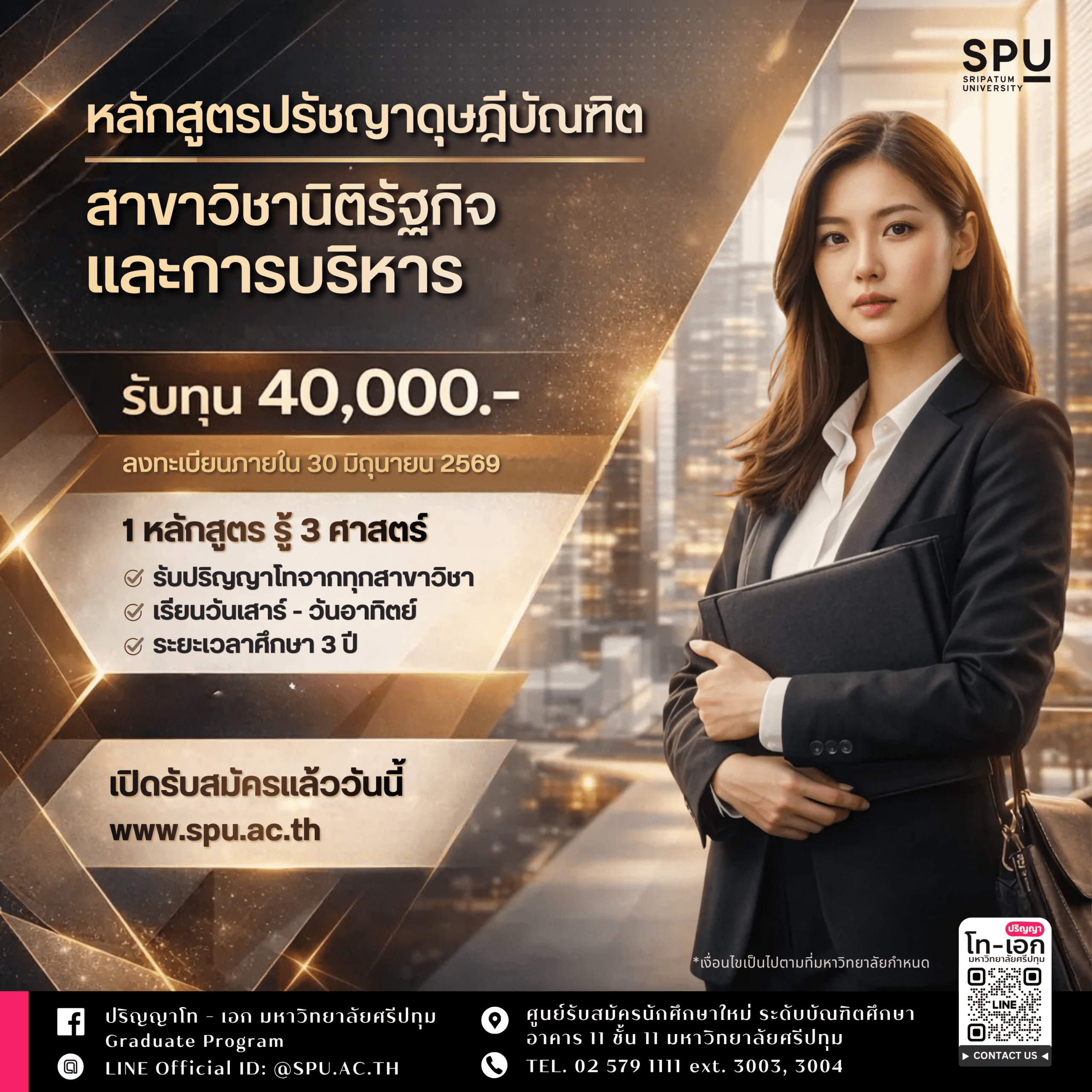 #AIFIRSTFORPROFESSIONALS #DhammaDrivenBusiness #DrDhammaDriven #DrVichitUon #GraduateCollegeOfManagement #GraduateOrientation2025 #QualityEducation #SDGs #SPU #spuAI #SPUconnect #SPUfamily #SPUGraduateSchool #SPUProfessional #SPUproud #SripatumUniversity #WeCreateProfessionalsByProfessionals #จากศาลาถึงบอร์ดรูม #ทุนการศึกษา #ปบัณฑิต #ปบัณฑิตวิชาชีพครู #ปริญญาเอก #ปริญญาโท #มหาวิทยาลัยศรีปทุม #วิทยาลัยบัณฑิตศึกษาด้านการจัดการ #สคบท #สภาคณะผู้บริหารบัณฑิตศึกษาแห่งประเทศไทย #สร้างมืออาชีพด้วยมืออาชีพ #เรียนกับตัวจริงประสบการณ์จริง #เรียนครูที่SPU DBA Decent work and economic growth (SDG 8) Gender equality (SDG 5) Good health and well-being (SDG 3) Industry innovation and infrastructure (SDG 9) No poverty (SDG 1) Partnerships for the goals (SDG 17) Peace justice and strong institutions (SDG 16) Quality education (SDG 4) Reduced inequalities (SDG 10) Responsible consumption and production (SDG 12) Sustainable cities and communities (SDG 11) นักบริหารระดับกลาง ปริญญาเอก ปริญญาโท