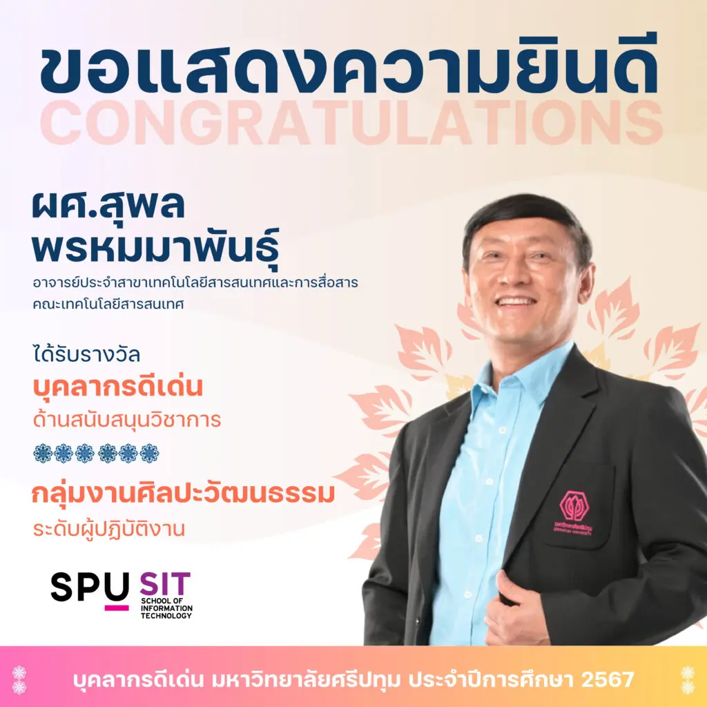 คณะเทคโนโลยีสารสนเทศ มหาวิทยาลัยศรีปทุมขอชื่นชมและร่วมแสดงความยินดีในเกียรติคุณอันควรค่าแก่การยกย่องครั้งนี้