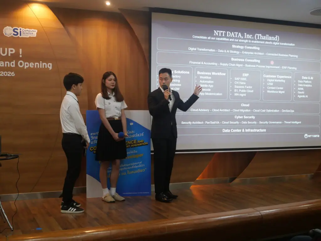 SPU AI Spark Club ได้รับเกียรติจากผู้เชี่ยวชาญจาก NTT DATA ที่มาเปิดมุมมองในการทำ AI ระดับองค์กร โดยเจาะลึกถึง Framework การกำกับดูแล AI และ Use Case ที่ใช้ในภาคอุตสาหกรรม ทั้ง Smart Manufacturing, Edge AI และ Intelligent Automation ภายในกิจกรรมที่จัดขึ้น นักศึกษาจะได้รับการถ่ายทอดทั้งเทคโนโลยีและวิธีการที่ใช้ในองค์กรระดับโลก พร้อมทั้งได้เห็นภาพการทำงานจริงในโลกธุรกิจ