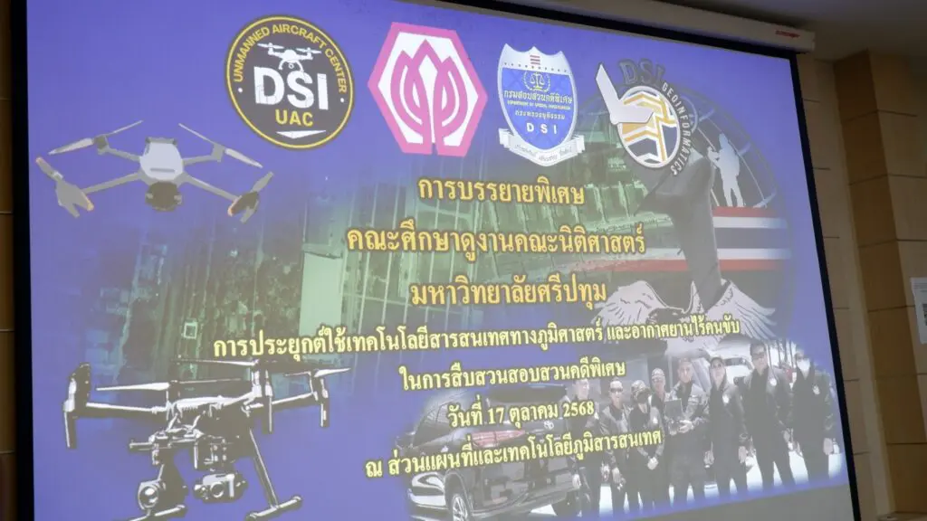 เนื้อหาการบรรยายครอบคลุมการประยุกต์ใช้ Drone และ GIS ในงานสืบสวนสอบสวนคดีพิเศษและการรวบรวมพยานหลักฐาน รวมถึงการนำไปใช้ประโยชน์ในหลากหลายมิติ เช่น