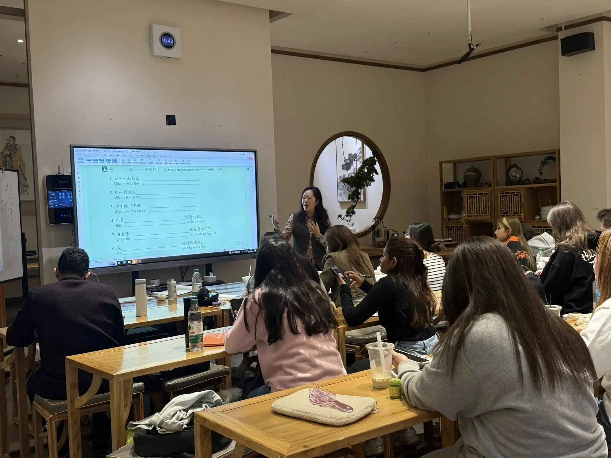 กิจกรรมในวันนี้เริ่มต้นด้วยการแบ่งคลาสเรียนภาษาจีนร่วมกับเพื่อนนักศึกษาจากนานาชาติ ได้ฝึกทักษะการฟัง พูด อ่าน เขียน ผ่านกิจกรรมการเรียนรู้ที่สนุกสนานและเข้มข้น