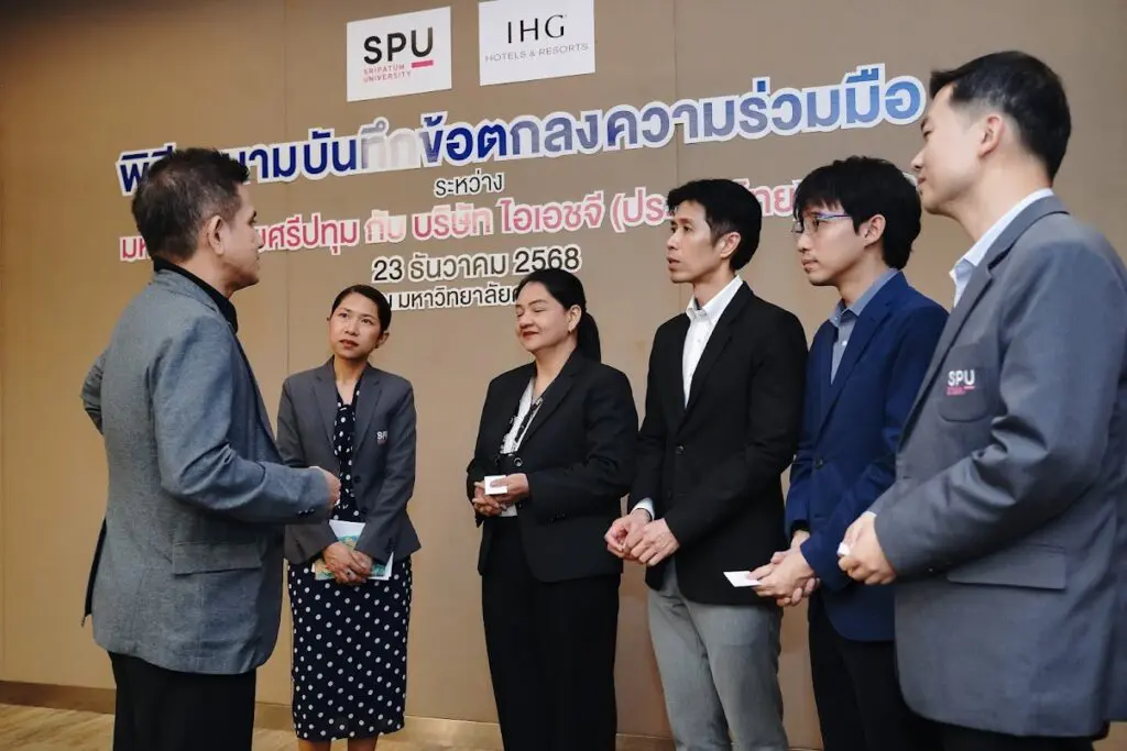 ณ ห้อง Boardroom อาคาร 11 ชั้น 14 มหาวิทยาลัยศรีปทุม เพื่อส่งเสริมความร่วมมือทางวิชาการและพัฒนาศักยภาพนักศึกษาให้สอดคล้องกับความต้องการของอุตสาหกรรมการโรงแรมและการบริการในระดับสากล