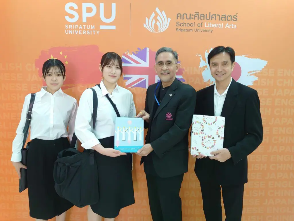 ในการนี้ ดร.ฉัตรเมือง เผ่ามานะเจริญ รักษาการคณบดีคณะศิลปศาสตร์ ให้เกียรติมอบของที่ระลึกแก่ผู้ช่วยสอนชาวญี่ปุ่น