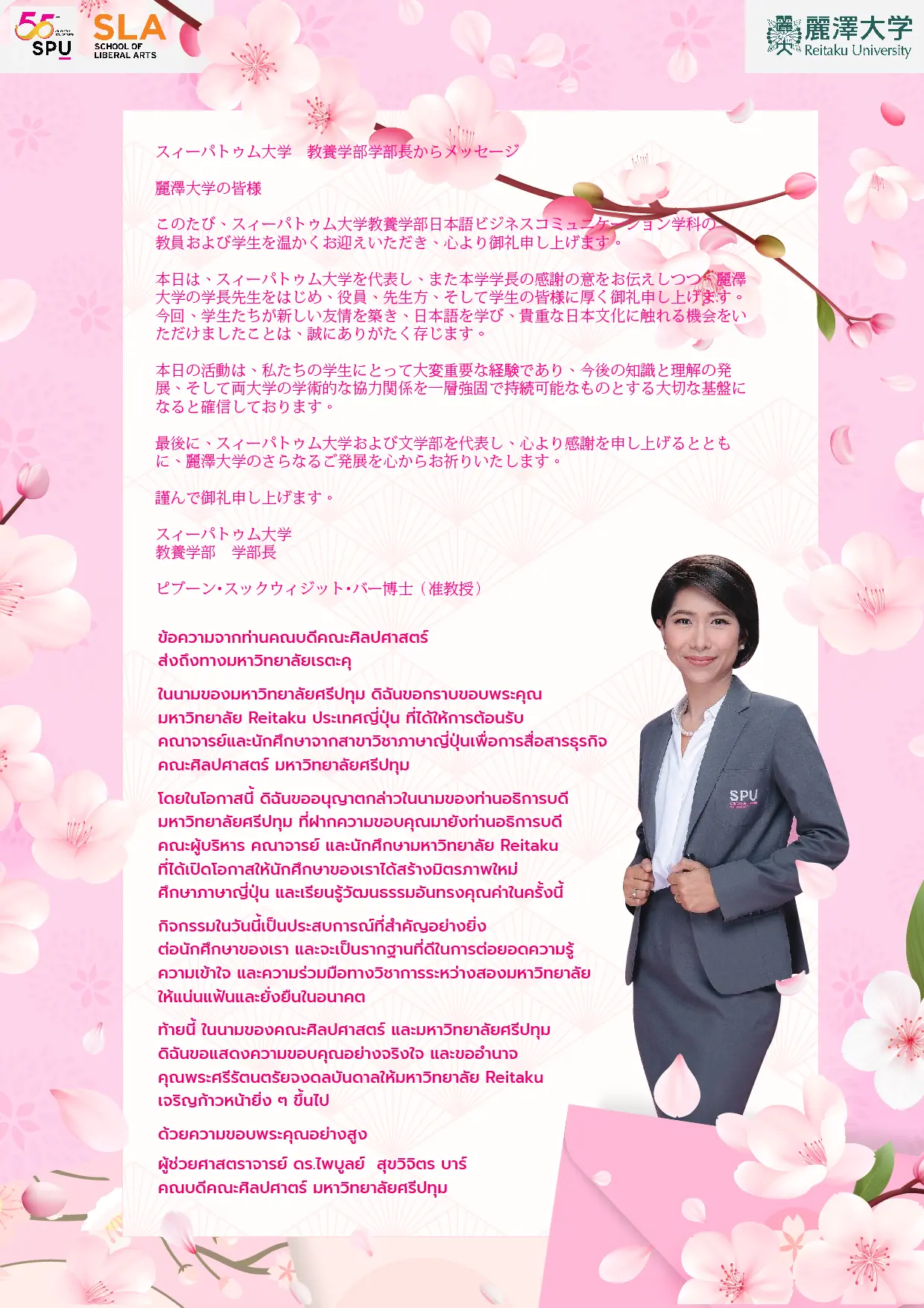 ระหว่าง มหาวิทยาลัยศรีปทุมและมหาวิทยาลัย Reitaku