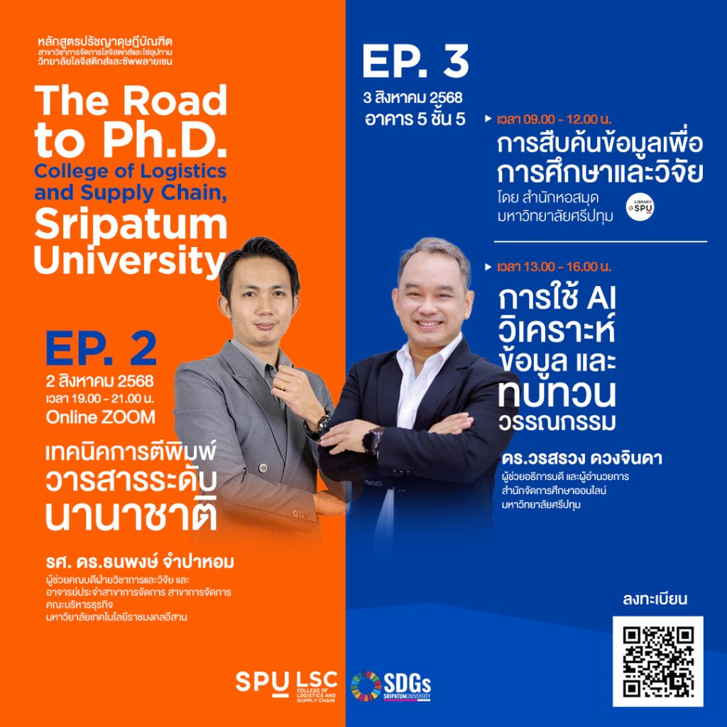 หัวข้อบรรยาย : The Road to Ph.D. College of Logistics and Supply Chain, Sripatum University EP. 2