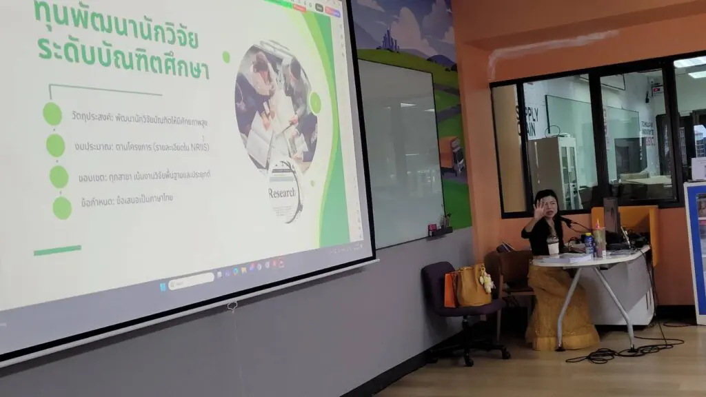 ตลอดการอบรม ผู้เข้าร่วมได้รับความรู้เชิงลึกเกี่ยวกับการพัฒนา ข้อเสนอโครงการวิจัย (Research Proposal) ตั้งแต่การกำหนดประเด็นปัญหา การออกแบบแนวทางการวิจัย ไปจนถึงเทคนิคการเขียนข้อเสนอที่สามารถสร้างความน่าสนใจและตอบโจทย์เกณฑ์การพิจารณาทุนวิจัยได้อย่างมีประสิทธิภาพ