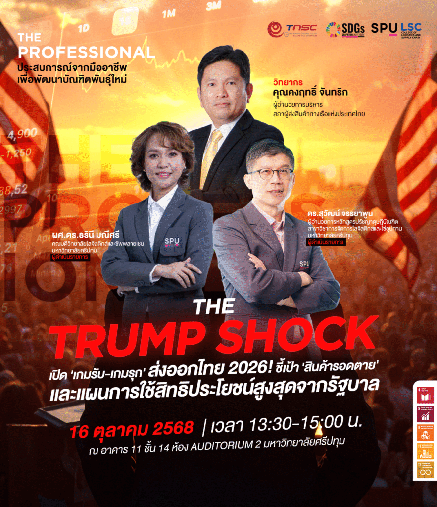 หัวข้อ “THE TRUMP SHOCK: เปิด ‘เกมรับ-เกมรุก’ ส่งออกไทย 2026! ชี้เป้า ‘สินค้ารอดตาย’ และแผนการใช้สิทธิประโยชน์สูงสุดจากรัฐบาลใหม่