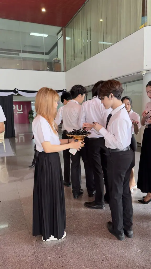 วิทยาลัยโลจิสติกส์และซัพพลายเชน มหาวิทยาลัยศรีปทุม จัดกิจกรรมแจกโบว์สีดำแก่บุคลากรและนักศึกษา พร้อมบริการตามจุดต่าง ๆ ภายในมหาวิทยาลัย