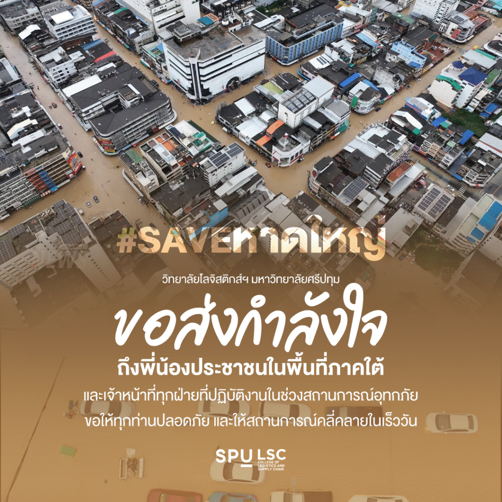 #SAVEภาคใต้ วิทยาลัยโลจิสติกส์และซัพพลายเชน มหาวิทยาลัยศรีปทุม (SPU LSC) ขอส่งความห่วงใยและกำลังใจไปยังพี่น้องประชาชนในพื้นที่ภาคใต้ทุกท่าน รวมถึงเจ้าหน้าที่ผู้เสียสละทุกฝ่ายที่กำลังปฏิบัติหน้าที่อย่างเข้มแข็ง