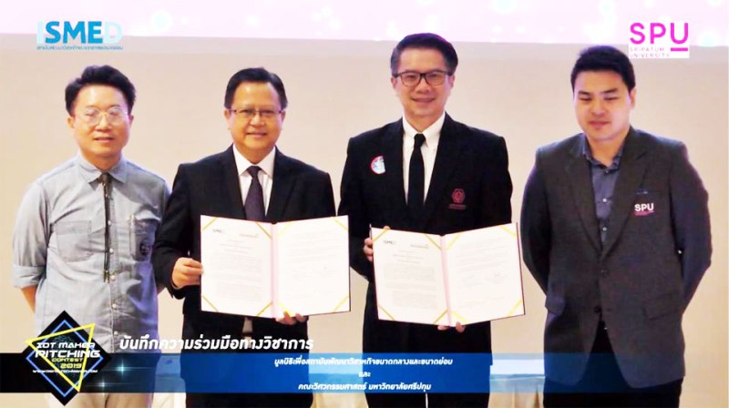 พิธีลงนาม ข้อตกลงความร่วมมือทางวิชาการ ระหว่าง คณะวิศวกรรมศาสตร์ มหาวิทยาลัยศรีปทุม และสถาบันพัฒนาวิสาหกิจขนาดกลางและขนาดย่อม เพื่อการพัฒนางานวิจัย เทคโนโลยี และนวัตกรรมสิ่งประดิษฐ์ ขับเคลื่อนภาคอุตสาหกรรม ตอบโจทย์ยุทธศาสตร์ชาติ Thailand 4.0
