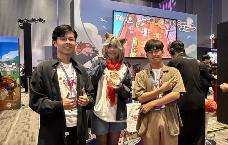 นักศึกษาสาขาการออกแบบอินเทอร์แอคทีฟและเกม คณะดิจิทัลมีเดีย มหาวิทยาลัยศรีปทุม โชว์ผลงานเกม “Sous Raccoon” สุดสร้างสรรค์ ในงาน Thailand International Game Showcase 2025 (TIGS 2025) ณ Paragon Hall ชั้น 5 สยามพารากอน เมื่อวันที่ 23-24 สิงหาคม 2568 ที่ผ่านมา