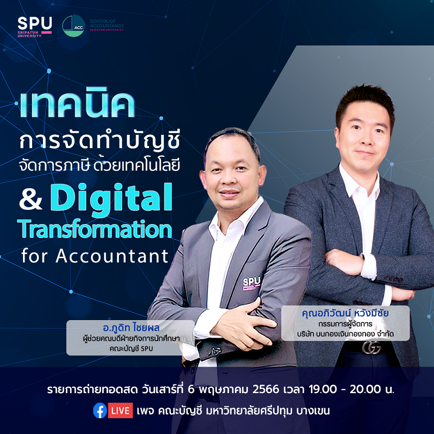 บัญชีดิจิทัล SPU: Facebook Live “เทคนิคการจัดทำบัญชี จัดการภาษี ด้วยเทคโนโลยี & Digital Transformation for Accountant”