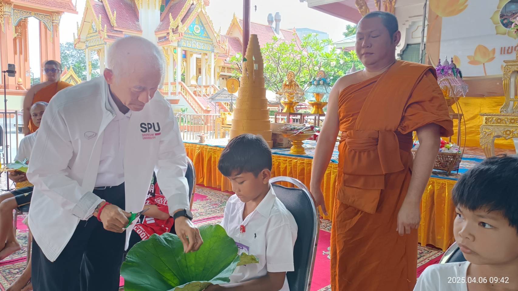 โดย ดร.โสภิต ภาโนมัย รองอธิการบดีมหาวิทยาลัยศรีปทุม ได้รับมอบหมายเป็นผู้แทนอธิการบดี เข้าร่วมพิธีบรรพชาสามเณร และร่วมถวายปัจจัยเพื่อสนับสนุนการดำเนินงานของโครงการ เมื่อวันที่ 6 เมษายน 2568 ณ วัดบางบัว แขวงอนุสาวรีย์ เขตบางเขน กรุงเทพมหานคร