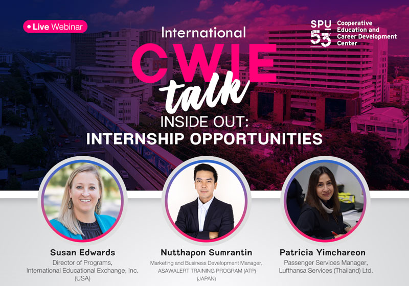 หัวข้อ Inside Out : Internship Opportunities จากผู้แทนสถานประกอบการนานาชาติ
