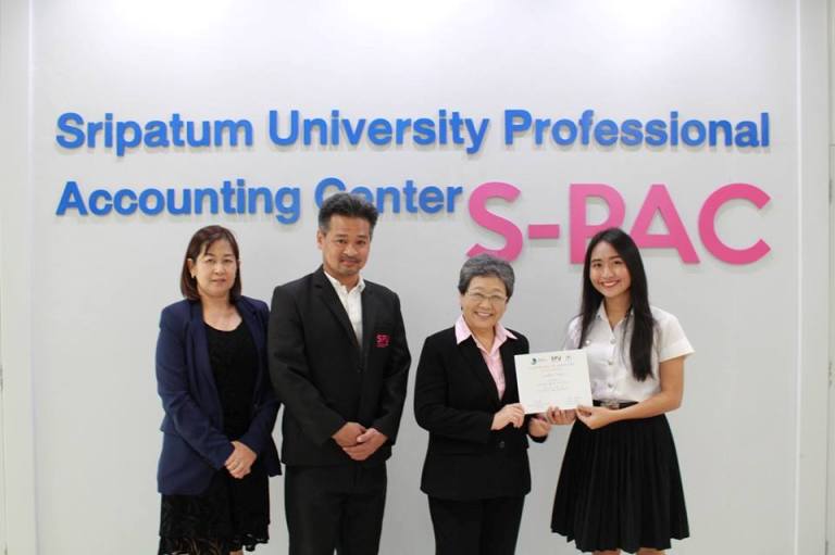 อาจารย์อุปพันธ์ ทวีผล ผู้อำนวยการศูนย์การบัญชีมืออาชีพ (S-PAC) มหาวิทยาลัยศรีปทุม จัดพิธีมอบวุฒิบัติให้แก่นักศึกษาคณะบัญชี SPU ชั้นปีที่ 3 จำนวน 33 คนที่ผ่านการฝึกปฎิบัติงานด้านการบัญชี จากศูนย์การบัญชีมืออาชีพ คณะบัญชีมหาวิทยาลัยศรีปทุม รุ่นที่ 13 ซึ่งได้รับเกียรติจาก คุณดารินทร์ หยกไพศาล นายกสมาคมสำนักงานบัญชีไทย เป็นผู้มอบวุฒิบัตรแก่นักศึกษาผู้ผ่านการฝึกปฎิบัติงานฯในครั้งนี้ โดยมี ผู้ช่วยศาสตราจารย์ ดร.ฐิตาภรณ์ สินจรูญศักดิ์ คณบดีคณะบัญชี พร้อมด้วยคณาจารย์ร่วมแสดงความยินดีกันอย่างอบอุ่น ณ ศูนย์ S-PAC ชั้น 10 อาคาร 9 มหาวิทยาลัยศรีปทุม กทม.(บางเขน) เมื่อเร็วๆนี้