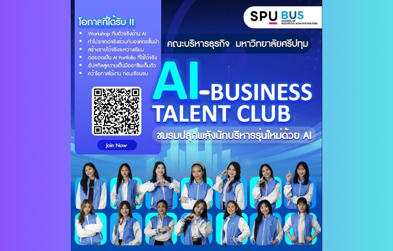 คณะบริหารธุรกิจ มหาวิทยาลัยศรีปทุม (SPU) เดินหน้าสร้างเวทีพัฒนาศักยภาพนักศึกษา เปิดรับสมัครสมาชิก AI–Business Talent Club ชมรมแห่งอนาคต ที่ผสานความรู้ด้าน AI เข้ากับ Business Skills เพื่อยกระดับนักศึกษาสู่การเป็นนักบริหารรุ่นใหม่ที่ก้าวทันโลกธุรกิจ พร้อมทั้งเปิดโอกาสให้สร้างรายได้จริงระหว่างเรียน