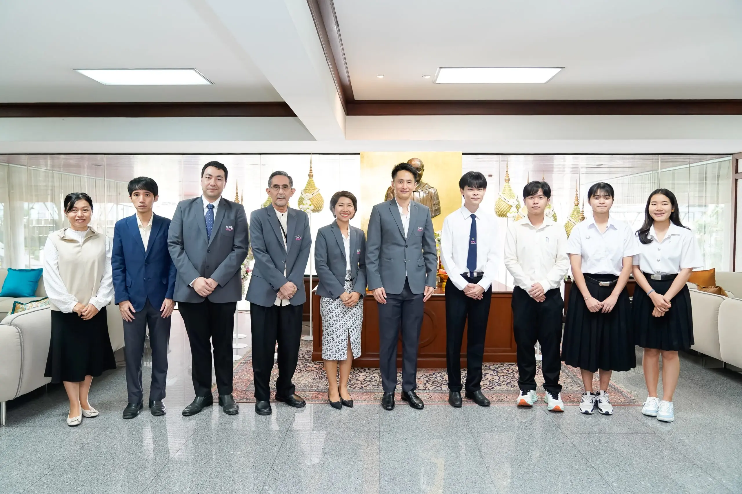 ผศ.ดร.ไพบูลย์ สุขวิจิตร บาร์ คณบดีคณะศิลปศาสตร์ มหาวิทยาลัยศรีปทุม พร้อมด้วย ดร.ณัฐชัย ศรีเอี่ยม หัวหน้าสาขาวิชาภาษาญี่ปุ่นเพื่อการสื่อสารธุรกิจ, ผศ.ดร.ยาสุมาสา โมริ ที่ปรึกษาหลักสูตร AJLS และผู้ดูแลนักศึกษา AJLS, อาจารย์อากิ ทาคาฮาชิ อาจารย์ประจำสาขาวิชา และคณาจารย์ ร่วมนำนักศึกษาสาขาวิชาภาษาญี่ปุ่นเพื่อการสื่อสารธุรกิจ จำนวน 4 คน เข้าพบ ดร.เกรียงไกร พุคยาภรณ์ ผู้ช่วยอธิการบดี มหาวิทยาลัยศรีปทุม เพื่อรับโอวาทก่อนเดินทางไปฝึกสหกิจศึกษา ณ ประเทศญี่ปุ่น ตั้งแต่วันที่ 20 ธันวาคม พ.ศ. 2567 ถึงวันที่ 31 มีนาคม พ.ศ. 2568 รวมระยะเวลา 3 เดือนครึ่ง