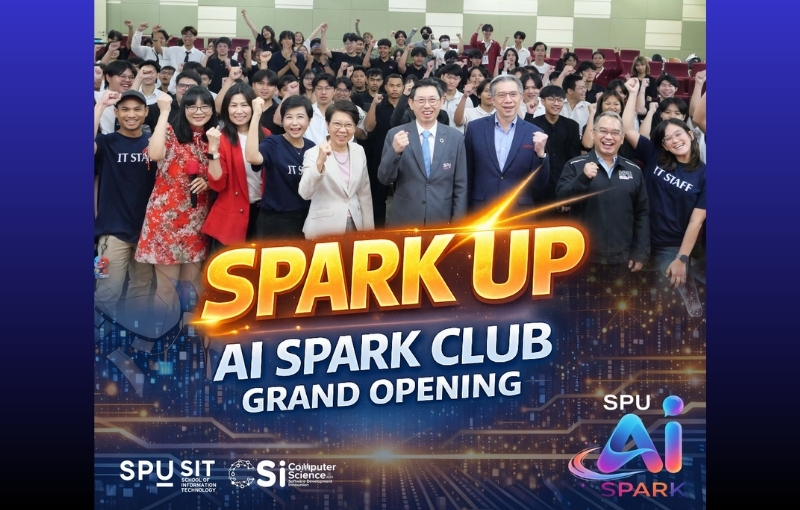 คณะเทคโนโลยีสารสนเทศ มหาวิทยาลัยศรีปทุม (SPU) จัดงาน “SPU AI SPARK CLUB GRAND OPENING” อย่างเป็นทางการ โดยได้รับเกียรติจาก ผศ.ดร.วิรัช เลิศไพฑูรย์พันธ์ รองอธิการบดีมหาวิทยาลัยศรีปทุม เป็นประธานในพิธี พร้อมด้วยคณะผู้บริหาร และ ดร.ชูพรรณ โกวานิชย์ CTO บริษัท ทีคิวเอ็ม อัลฟา จำกัด (มหาชน) เข้าร่วมเป็นเกียรติ ท่ามกลางบรรยากาศแห่งการรวมพลังของนักศึกษาและคนรุ่นใหม่สายเทคโนโลยี ที่พร้อมขับเคลื่อนอนาคต AI ของ SPU อย่างเป็นรูปธรรม