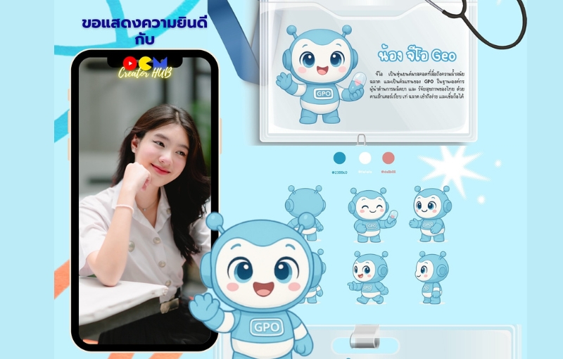 มาสคอต “จีโอ” (GEO) มีบุคลิกเรียบ เท่ ฉลาด เข้าถึงง่าย และมีความเป็นมิตร สะท้อนภาพลักษณ์ขององค์การเภสัชกรรมในฐานะ “องค์กรรัฐที่ทันสมัย” ที่พร้อมรับฟัง เข้าใจ และอยู่ใกล้ชิดกับประชาชนมากยิ่งขึ้น