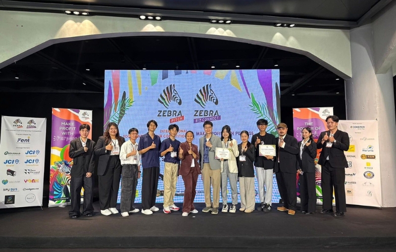 นักศึกษาคณะบริหารธุรกิจ มหาวิทยาลัยศรีปทุม (SPU) ทีม BlueWaves – TonKraam Group สร้างชื่อเสียงระดับนานาชาติให้กับมหาวิทยาลัยอีกครั้ง ด้วยการนำเสนอผลงานเชิงนวัตกรรมที่ผสานความคิดสร้างสรรค์และกลยุทธ์ทางธุรกิจอย่างมืออาชีพ คว้า 2 รางวัลใหญ่จากเวที “ZEBRA PITCH 2025” การแข่งขันแผนธุรกิจเยาวชนระดับโลก ณ Q STADIUM, MF, EMQUARTIER เมื่อวันที่ 31 สิงหาคม 2568 ตอกย้ำบทบาท Dynamic University ที่มุ่งสร้างบัณฑิตรุ่นใหม่ให้ก้าวทันการเปลี่ยนแปลง มีพลังความคิดสร้างสรรค์ และพร้อมสร้างคุณค่าใหม่ให้สังคมและธุรกิจอย่างยั่งยืน