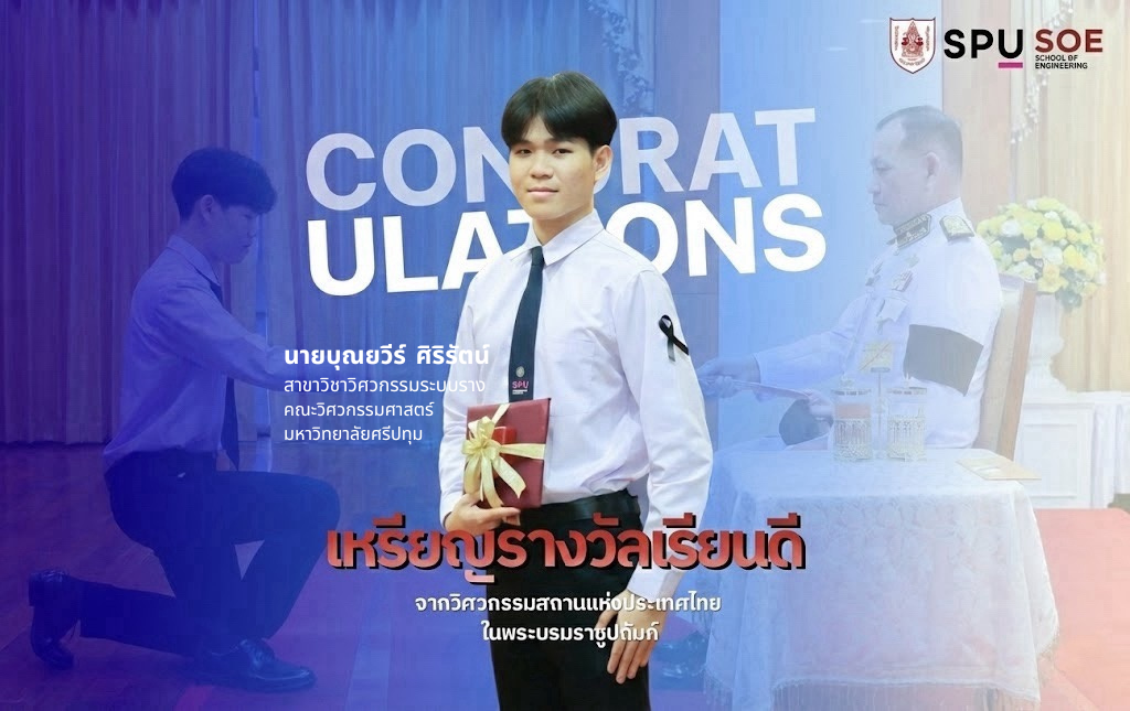 มหาวิทยาลัยศรีปทุม ขอแสดงความยินดีกับ นายบุณยวีร์ ศิริรัตน์ นักศึกษาสาขาวิชาวิศวกรรมระบบราง คณะวิศวกรรมศาสตร์ ที่ได้รับ เหรียญรางวัลเรียนดี ประจำปีการศึกษา 2568 จากวิศวกรรมสถานแห่งประเทศไทย ในพระบรมราชูปถัมภ์ ซึ่งเป็นรางวัลอันทรงเกียรติที่มอบให้แก่นิสิตนักศึกษาคณะวิศวกรรมศาสตร์จากสถาบันอุดมศึกษาทั่วประเทศที่มีผลการเรียนเป็นเลิศ