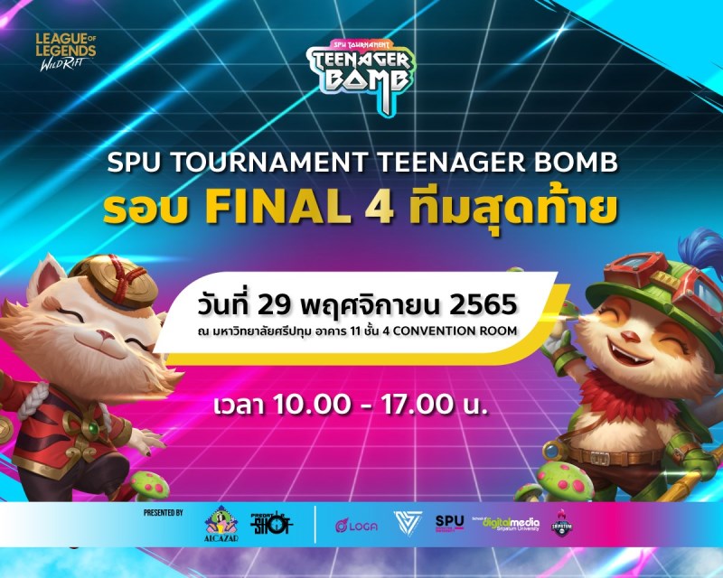 ผ่านพ้นไปเป็นที่เรียบร้อย สำหรับการเปิดตัวอย่างสวยงามกับงานแถลงข่าว “SPU TOURNAMENT TEENAGER BOMB” ที่จัดขึ้นโดยนักศึกษามหาวิทยาลัยศรีปทุม วิทยาเขตบางเขน คณะดิจิทัลมีเดีย ในเกมส์ League of Legends : Wild Rift พร้อมเงินรางวัลรวมกว่า 10,000 บาท