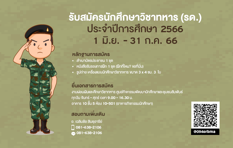 เปิดรับสมัครนักศึกษาวิชาทหาร (รด.) ชั้นปีที่ 1-5 ประจำปีการศึกษา 2566