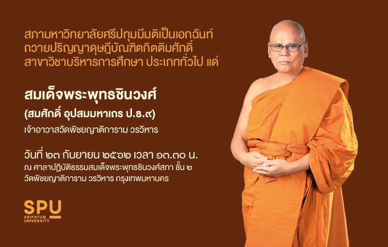 สภามหาวิทยาลัยศรีปทุมมีมติเป็นเอกฉันท์ ถวายปริญญาศิลปศาสตรดุษฎีบัณฑิตกิตติมศักดิ์สาขาวิชาบริหารการศึกษาประเภททั่วไปประจำปีการศึกษา ๒๕๖๑ แด่สมเด็จพระพุทธชินวงศ์ (สมศักดิ์ อุปสมมหาเถร ป.ธ.๙) เจ้าอาวาสวัดพิชยญาติฯ เจ้าคณะใหญ่หนกลาง รองอธิการบดี มจร.วิทยาเขตบาฬีศึกษาพุทธโฆส วันจันทร์ที่ ๒๓ กันยายน พ.ศ. ๒๕๖๒ ณ ศาลาปฏิบัติธรรมสมเด็จพระพุทธชินวงศ์สภา ชั้น ๒ วัดพิชยญาติการามวรวิหาร เขตคลองสาน กรุงเทพมหานคร