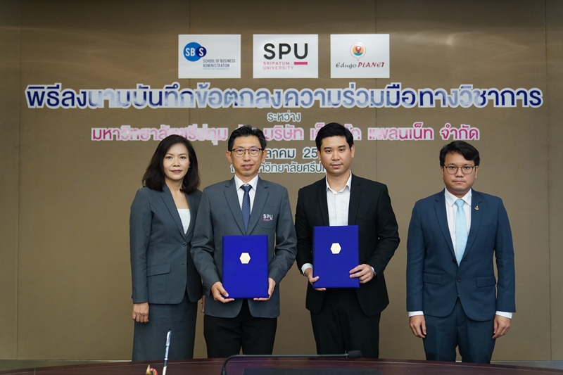 วันนี้ (10 ตุลาคม) ผศ.ดร.วิรัช เลิศไพฑูรย์พันธ์ รองอธิการบดี มหาวิทยาลัยศรีปทุม พร้อมด้วย นายภรัณยู ฉายดิลก ประธานเจ้าหน้าที่บริหาร บริษัทเอ็ดดูโก แพลนเน็ท จำกัด ร่วมลงนามในบันทึกข้อตกลงความร่วมมือทางวิชาการ ระหว่าง มหาวิทยาลัยศรีปทุม และบริษัท เอ็ดดูโก แพลนเน็ท จำกัด โดยมี ผศ.ดร.รวิภา อัครจินดานนท์ คณบดีคณะบริหารธุรกิจ และ นายวรรธนสกล รักปทุม กรรมการบริหาร บริษัทเอ็ดดูโก แพลนเน็ท จำกัด ร่วมลงนามเป็นสักขีพยาน เพื่อร่วมมือในการผลิตบัณฑิตตอบสนองความต้องการในการดำเนินธุรกิจยุคดิจิทัล ให้มีความรู้ทางวิชาการ เพื่อพัฒนาทรัพยากรบุคคลขององค์กร ตลอดจนส่งเสริมสนับสนุนให้นักศึกษาได้มีโอกาสปฏิบัติงานจริงในสถานประกอบการในโครงการสหกิจศึกษา พร้อมทั้งส่งเสริมความร่วมมือในการจัดกิจกรรมทางวิชาการร่วมกัน ณ ห้อง Board Room ชั้น 14 อาคาร 11 มหาวิทยาลัยศรีปทุม