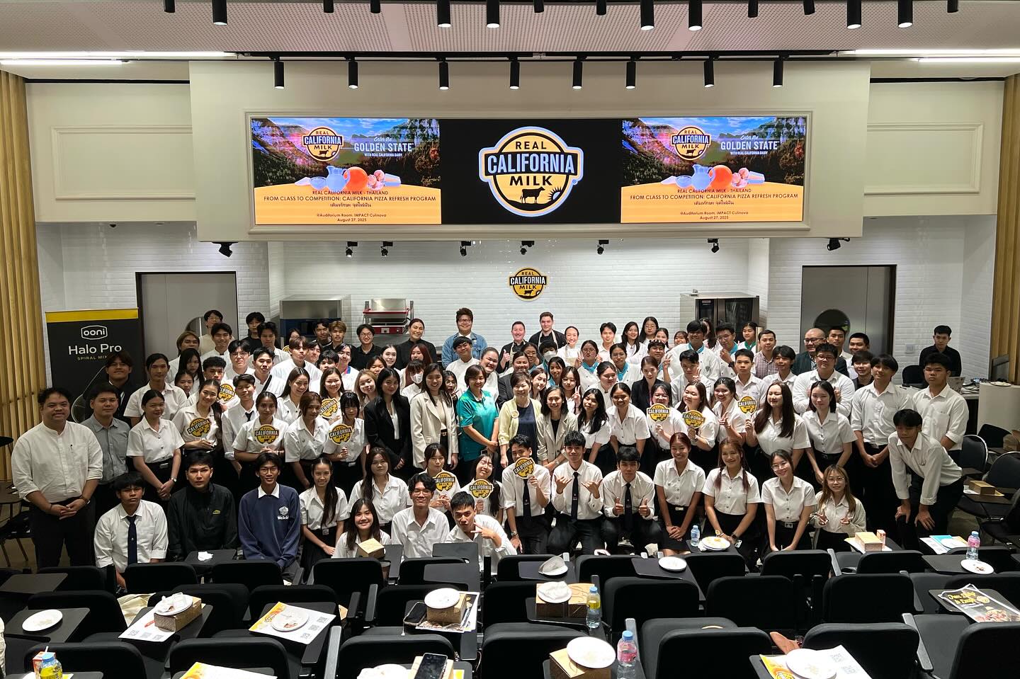 ภายในงาน คุณธีรวี อังกุวรกุล ตัวแทนคณะกรรมการที่ปรึกษาเกี่ยวกับผลิตภัณฑ์นมแห่งแคลิฟอร์เนีย ประจำประเทศไทย ได้ถ่ายทอดความรู้เกี่ยวกับผลิตภัณฑ์ชีสจากแคลิฟอร์เนีย แนะนำคุณสมบัติเฉพาะตัวของชีสแต่ละชนิด และอัปเดตเทรนด์พิซซ่าน่าสนใจจากทั่วโลก ให้นักศึกษาได้เข้าใจความหลากหลายและศักยภาพของวัตถุดิบระดับโลกอย่างลึกซึ้ง