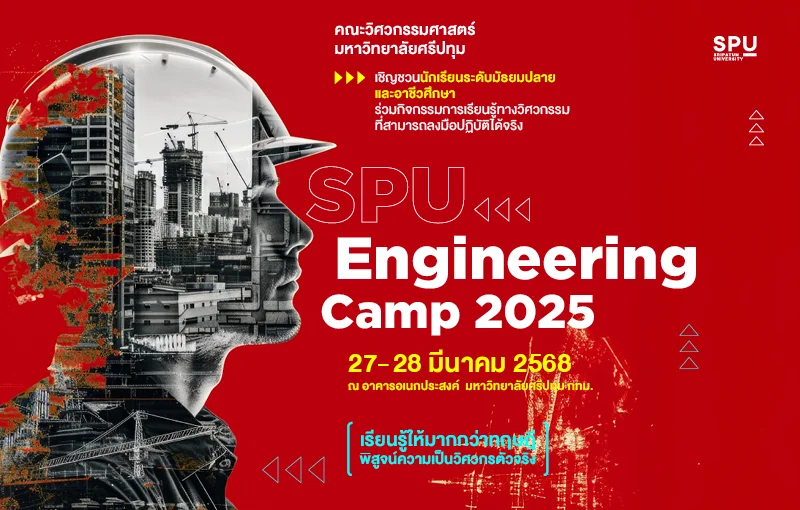 คณะวิศวกรรมศาสตร์ มหาวิทยาลัยศรีปทุม เชิญชวนนักเรียนระดับมัธยมศึกษาปีที่ 5-6 และนักศึกษาวิชาชีพ (ปวช./ปวส.) เข้าร่วมโครงการ “SPU Engineering Camp 2025” ซึ่งจัดขึ้นระหว่างวันที่ 27-28 มีนาคม 2568 ณ อาคารอเนกประสงค์ มหาวิทยาลัยศรีปทุม กทม. โดยค่ายนี้มุ่งเน้นให้ผู้เข้าร่วมได้สัมผัสประสบการณ์การเรียนรู้ด้านวิศวกรรมอย่างใกล้ชิด ผ่านกิจกรรมที่ “เรียนรู้จริง ปฏิบัติจริง และลงมือทำจริง”