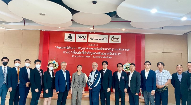 ศูนย์วิจัยนวัตกรรมและการจัดการอุตสาหกรรมก่อสร้างเพื่อการพัฒนาที่ยั่งยืน (Construction-Industrial Innovation & Management for Sustainable Development Research Center: CIMsus) คณะวิศวกรรมศาสตร์ มหาวิทยาลัยศรีปทุม จัดเสวนา หัวข้อเรื่อง “สัญญาศรีปทุม 2 – สัญญาจ้างเหมาก่อสร้างมาตรฐานระดับสากล” โดยได้รับเกียรติจากผู้ทรงคุณวุฒิเข้าร่วมการเสวนา อาทิ ศ.ดร.ณรงค์ เหลืองบุตรนาค, คุณลิซ่า งานตระกูลพานิช, คุณกัมพล กิตติพงษ์พัฒนา, คุณชำนาญ พิเชษฐพันธ์ และคุณนิวัฒน์ ธัญปิตินันท์ ซึ่งมี ผศ.ดร.ไพจิตร ผาวัน รองคณบดีคระวิศวกรรมศาสตร์ เป็นผู้ดำเนินรายการ ภายหลังจากการเปิดตัวสัญญาศรีปทุม 2 ไปเมื่อเร็วๆนี้ ซึ่งผู้ทรงคุณวุฒิได้ร่วมกันปรับปรุงเสร็จเป็นที่เรียบร้อยแล้ว จึงได้จัดการเสวนาในครั้งนี้เพื่อเล่าถึง “เงื่อนไขที่สำคัญของสัญญาศรีปทุม 2″ สัญญาจ้างเหมา ก่อสร้าง มาตรฐาน ฉบับศรีปทุม 2 ณ ห้อง CONVENTION ชั้น 4 อาคาร 11 มหาวิทยาลัยศรีปทุม เมื่อวันที่ 27 พฤศจิกายน 2565 ที่ผ่านมา