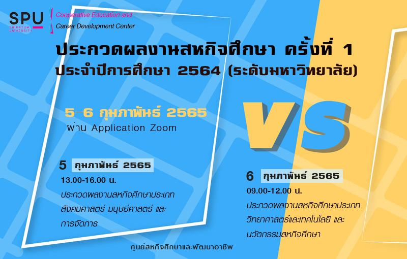 ศูนย์สหกิจศึกษาและพัฒนาอาชีพ ม.ศรีปทุม จัดประกวดผลงานสหกิจศึกษา ครั้งที่ 1 ประจำปีการศึกษา 2564 (ระดับมหาวิทยาลัย) 5 – 6 ก.พ.65