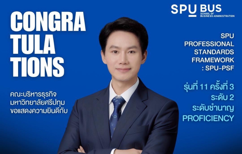 มหาวิทยาลัยศรีปทุม (SPU) ขอแสดงความยินดีกับ อาจารย์ชลากร อุดมอุกฤษฎ์ อาจารย์ประจำสาขาวิชาการตลาดดิจิทัล ที่ผ่านการประเมินตามกรอบมาตรฐานอาจารย์มืออาชีพ มหาวิทยาลัยศรีปทุม (SPU-PSF) รุ่นที่ 11 ครั้งที่ 3 ระดับ 2 ระดับชำนาญ (Proficiency) ซึ่งความสำเร็จครั้งนี้สะท้อนถึงความมุ่งมั่นในการพัฒนาศักยภาพด้านการเรียนการสอนและความเป็นมืออาชีพของคณาจารย์คณะบริหารธุรกิจ SPU ตอกย้ำคุณภาพการศึกษาที่มุ่งสร้างประสบการณ์การเรียนรู้ที่เข้มข้น และพัฒนานักศึกษาให้พร้อมก้าวสู่โลกธุรกิจยุคใหม่อย่างมั่นใจและยั่งยืน