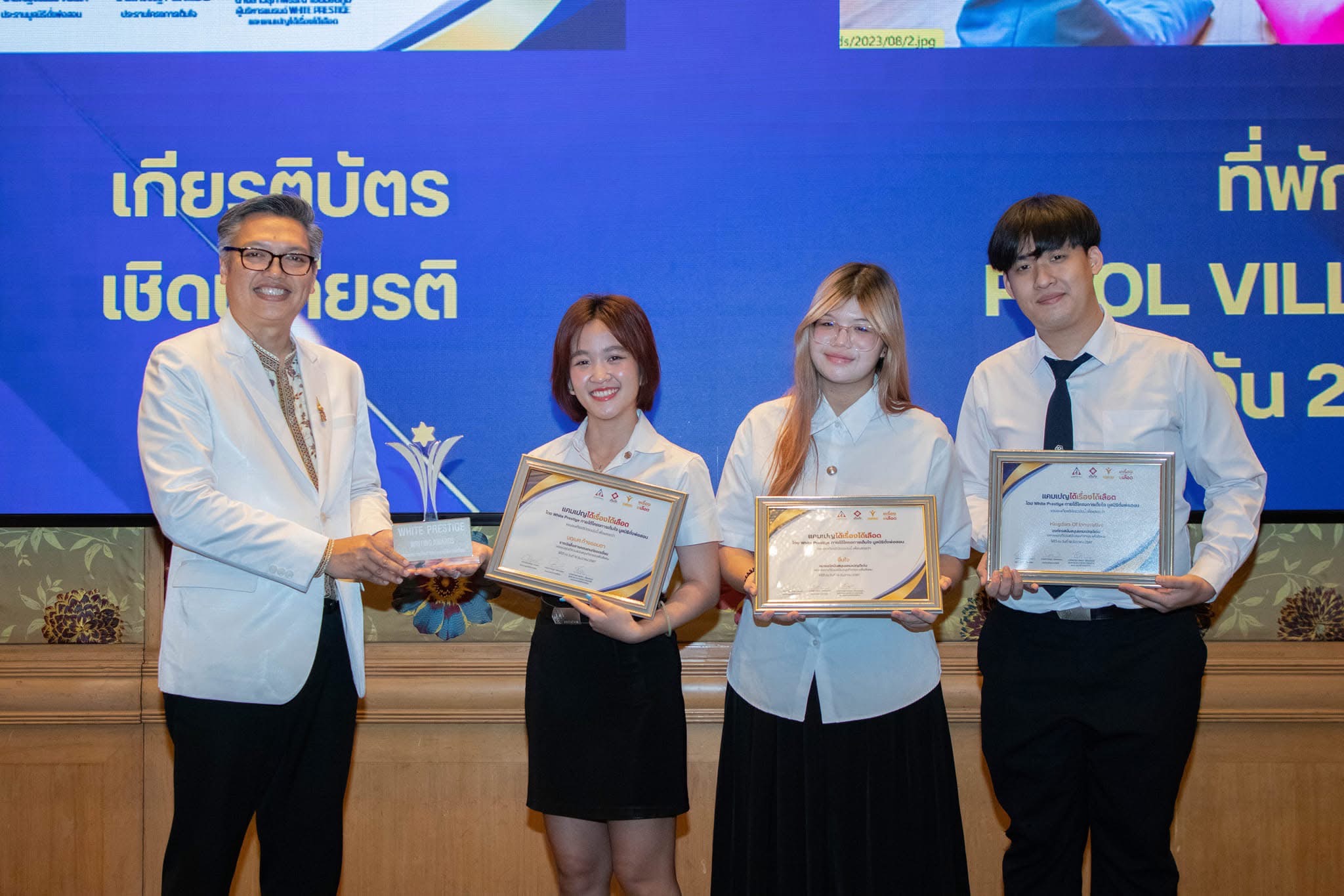 มหาวิทยาลัยศรีปทุม ขอแสดงความยินดีกับทีม Crimson Dawn จากคณะดิจิทัลมีเดีย คว้ารางวัล “สื่อสารคอนเทนท์ยอดเยี่ยม” ในการประกวด White Prestige Writing Awards 2024 โดยมี ผศ.ดร.ธเนศ เวศร์ภาดา นายกสมาคมภาษาและหนังสือแห่งประเทศไทย ในพระบรมราชูปถัมภ์ เป็นผู้มอบรางวัล ณ ห้องแกรนด์บอลรูม 2 โรงแรมเชอราตัน แกรนด์ สุขุมวิท เมื่อวันที่ 19 ธันวาคมที่ผ่านมา