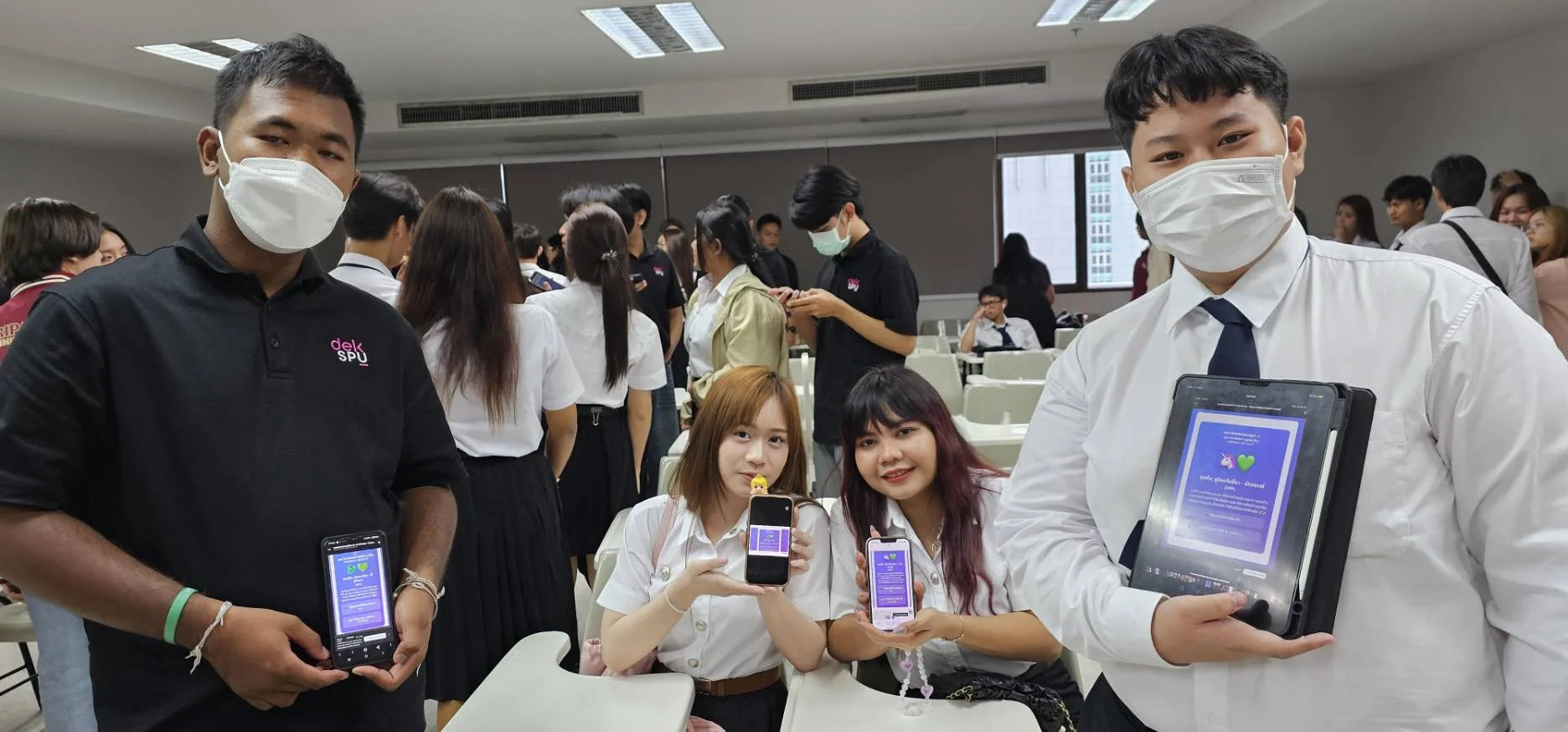 ภายในกิจกรรม น้อง ๆ ได้ทำความรู้จักกับ ระบบการเรียนและแพลตฟอร์มออนไลน์ ที่จะใช้ในการเรียนรู้ตลอดหลักสูตร รวมถึงการแนะนำ “ผู้ช่วยคนสำคัญ” ในโลกดิจิทัลอย่าง AI เพื่อนซี้ 24 ชั่วโมง ได้แก่ พี่เปอร์ พี่ฟิว