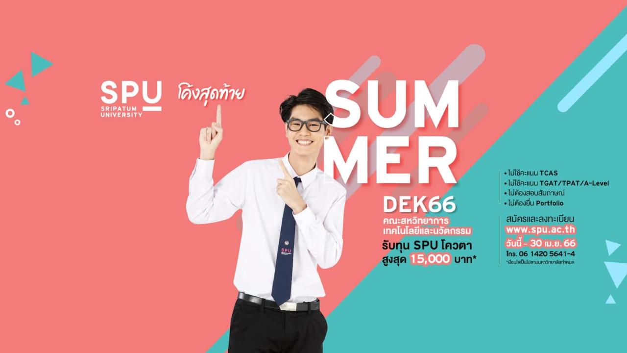 โค้งสุดท้าย ทุน SPU โควตา #Dek66 ที่สนใจเรียน #คณะสหวิทยาการเทคโนโลยีและนวัตกรรม ตอนนี้มีทุน SPU รับทุนสูงสุดถึง 15,000 บาท*