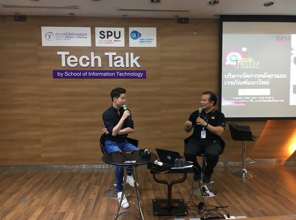 คณะเทคโนโลยีสารสนเทศ ร่วมกับ คณะบริหารธุรกิจ และคณะวิศวกรรมศาสตร์ มหาวิทยาลัยศรีปทุม ร่วมบูรณาการการเรียนรู้ ด้วยการจัดเวทีเสวนา Tech Talk Season 5 #7 ภาคการศึกษาที่ 1/2562 ในหัวข้อ “เรียนรู้โปรแกรมบริหารจัดการคลังยาและเวชภัณฑ์แนวใหม่ที่ใช้งานอย่างแพร่หลายกับโรงพยาบาลมากกว่า 20 แห่ง” กับ คุณวสันต์ สายทอง รองผู้อำนวยการศูนย์เทคโนโลยีสารสนเทศและการสื่อสาร สำนักงานปลัดกระทรวงสาธารณสุข ร่วมถ่ายทอดความรู้และแชร์ประสบการณ์ตรง ให้กับนักศึกษา คณาจารย์ และบุคคลที่สนใจทั่วไปได้เรียนกับตัวจริง ประสบการณ์จริง ณ ห้อง Auditorium 2 อาคาร 11มหาวิทยาลัยศรีปทุม กทม.(บางเขน)