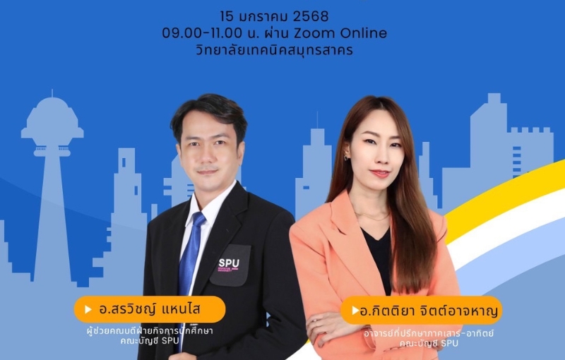 คณะบัญชี มหาวิทยาลัยศรีปทุม (SPU) จัดกิจกรรมอบรมให้ความรู้ในหัวข้อ “AI กับวิชาชีพบัญชียุคใหม่” ให้กับนักศึกษาวิทยาลัยเทคนิคสมุทรสาคร ผ่านระบบออนไลน์ Zoom Meeting เมื่อวันที่ 15 มกราคม 2568 เพื่อเสริมสร้างความเข้าใจเกี่ยวกับบทบาทของเทคโนโลยีปัญญาประดิษฐ์ (AI) และการประยุกต์ใช้เทคโนโลยีในสายงานบัญชีในโลกยุคดิจิทัล