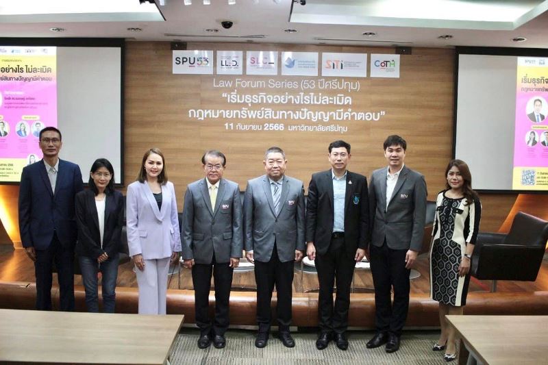 อาจารย์กุศล สังขนันท์ ผู้ช่วยอธิการบดีด้านกฎหมายและด้านบริการวิชาการ มหาวิทยาลัยศรีปทุม เป็นประธานเปิดการเสวนาวิชาการ หัวข้อ “เริ่มธุรกิจอย่างไรไม่ละเมิด กฎหมายทรัพย์สินทางปัญญามีคำตอบ” โดยได้รับเกียรติจากผู้ทรงคุณวุฒิและผู้เชี่ยวชาญหลายท่านเข้าร่วมในการเสวนาวิชาการ อาทิ ร้อยโท ดร.ธนกฤษฎ์ เอกโยคะ รองผู้จัดการกองทุนพัฒนาสื่อปลอดภัยและสร้างสรรค์ และผู้เชี่ยวชาญด้านทรัพย์สินทางปัญญา ,ดร.เอกพงษ์ สารน้อย อาจารย์ประจำหลักสูตรนิติศาสตรดุษฎีบัณฑิต ผศ.ดร.ช้องนาง วิพุธานุพงษ์ ผู้อำนวยการศูนย์กฎหมายศรีปทุม ,ผศ.ดร.เกรียงไกร สัจจะหฤทัย คณบดีคณะสหวิทยการ เทคโนโลยีและนวัตกรรม อาจารย์วรวลัญช์ ธนัชปิยะธันย์ ผู้ช่วยคณบดีฝ่ายกิจการนักศึกษา วิทยาลัยการท่องเที่ยวและการบริการ และมี ดร.ศิวพร เสาวคนธ์ อาจารย์ประจำหลักสูตรนิติศาสตรดุษฎีบัณฑิต เป็นผู้ดำเนินรายการ เพื่อร่วมพูดคุยถ่ายทอดความรู้ เกี่ยวกับข้อกฎหมายต่างๆ พร้อมแลกเปลี่ยนมุมมองทางธุรกิจ Startup จากผู้เชี่ยวชาญจากหลากหลายสาขาวิชาชีพ แก่นักศึกษาและผู้ที่สนใจ ณ ห้องออดิทรอเรียม 2 ชั้น 14 อาคาร 11 มหาวิทยาลัยศรีปทุม กทม.(บางเขน) เมื่อวันที่ 11 กันยายน 2566 ที่ผ่านมา Law Forum Series (53 ปีศรีปทุม) จัดโดย หลักสูตรนิติศาสตรดุษฎีบัณฑิต มหาวิทยาลัยศรีปทุม