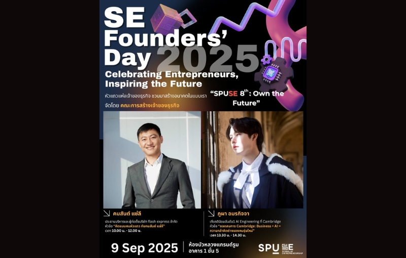 งาน “SE Founders’ Day 2025” นับเป็นอีกหนึ่งก้าวสำคัญของ SPU ในการจุดประกายความคิดและพลังให้แก่คนรุ่นใหม่ เพื่อก้าวสู่การเป็น Entrepreneur of the Future อย่างแท้จริง