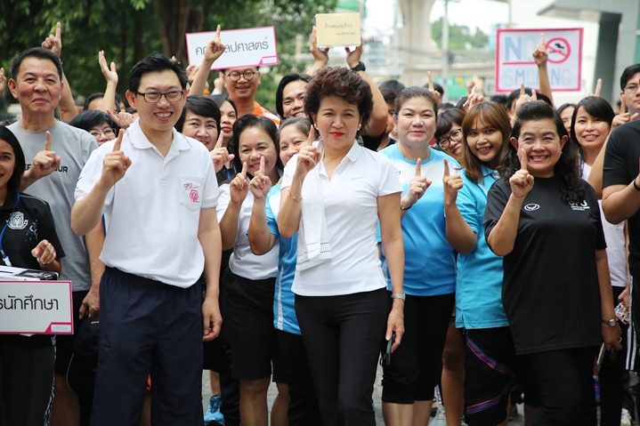 ( 8 ธ.ค.60 : มหาวิทยาลัยศรีปทุม) ดร.รัชนีพร พุคยาภรณ์ พุกกะมาน อธิการบดี มหาวิทยาลัยศรีปทุม ร่วมกับ ผู้บริหาร คณาจารย์ เจ้าหน้าที่ และนักศึกษา จัดโครงการเดินวิ่งเพื่อสุขภาพ และรณรงค์งดสูบบุหรี่ พร้อมทั้งสนับสนุนโครงการก้าวคนละก้าว