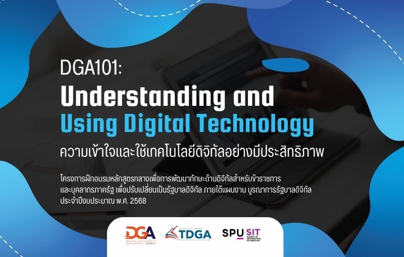 คณะเทคโนโลยีสารสนเทศ มหาวิทยาลัยศรีปทุม (SPU) ร่วมกับ สถาบันพัฒนาบุคลากรภาครัฐด้านดิจิทัล (TDGA) และ สำนักงานพัฒนารัฐบาลดิจิทัล (องค์การมหาชน) (DGA) เปิดอบรมหลักสูตร “DGA101 : Understanding and Using Digital Technology” เพื่อเสริมสร้างความรู้ ความเข้าใจ และทักษะในการใช้งานเทคโนโลยีดิจิทัลให้แก่ข้าราชการและบุคลากรภาครัฐ รองรับการเปลี่ยนผ่านสู่รัฐบาลดิจิทัลอย่างมีประสิทธิภาพ